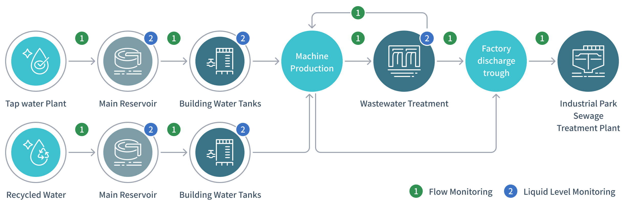 This effectively integrates water resources and reduces tap water usage. In-plant wastewater is also treated and reused through a treatment system.